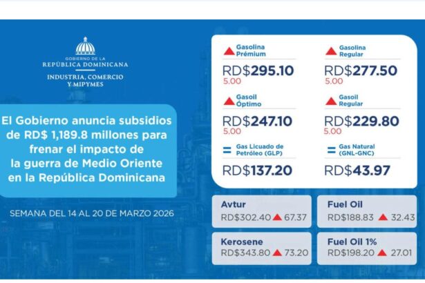 Gasolina, gasoil premium y regular suben RD$ 5.00 por galón, informa Industria y Comercio