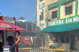 Santo Domingo.– Unidades del Cuerpo de Bomberos del Distrito Nacional continúan este sábado en la fase de remoción de escombros tras el incendio registrado en la Ferretería San Miguel, ubicada en el kilómetro 7 de la avenida Independencia.