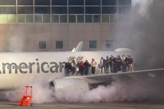 Evacúan avión de American Airlines tras incendio en los frenos antes de despegar