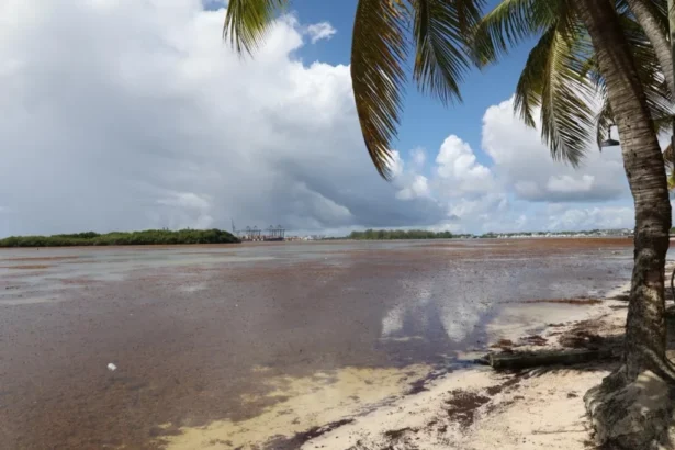 El aumento de sargazo se ha visto relacionado con las recientes lluvias torrenciales que han azotado el país, lo que ha provocado que grandes cantidades de esta alga lleguen a las costas.