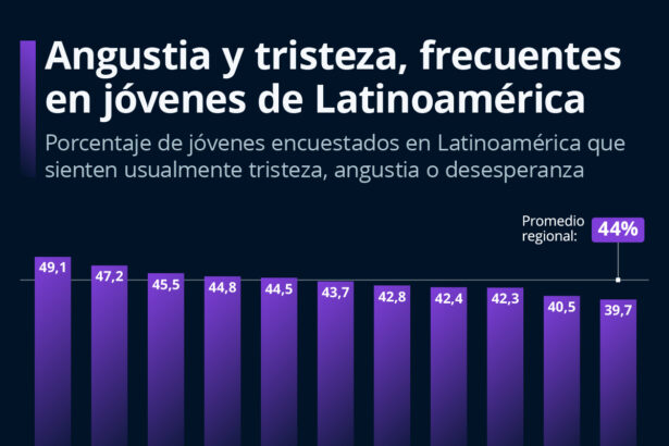 El estudio El Estado Mental del Mundo en 2024, elaborado por Sapien Labs, revela que el 44% de los jóvenes latinoamericanos de entre 18 y 24 años experimenta con frecuencia sentimientos de tristeza, angustia o desesperanza.
