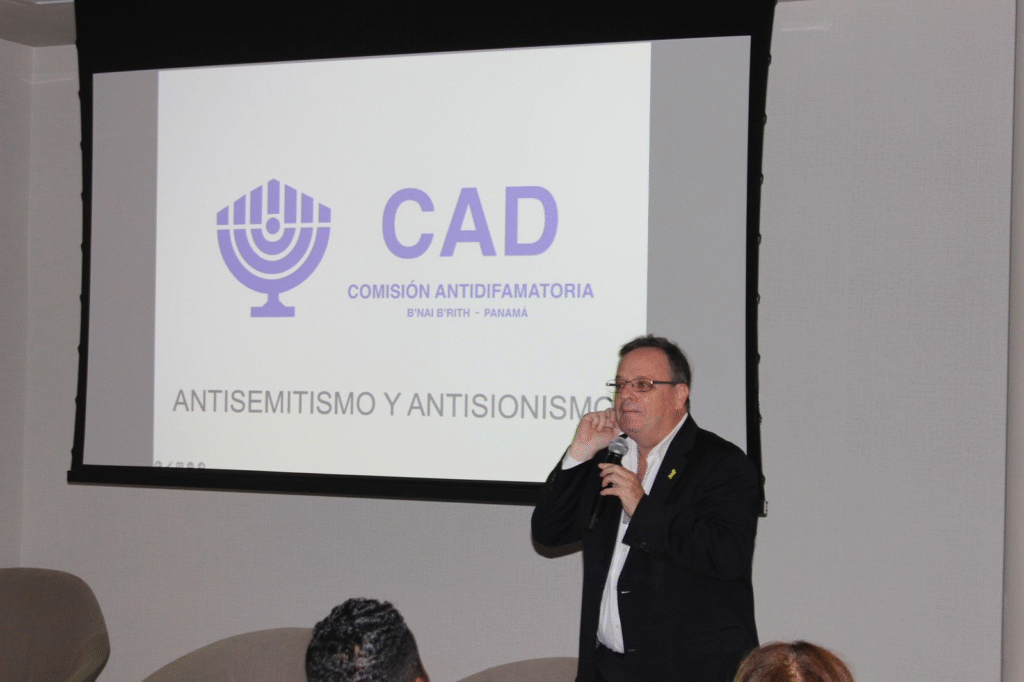 expuso acerca de los hechos ocurridos el pasado 7 de octubre de 2023 y las consecuencias de estos en la realidad regional; y del Licenciado Alberto Jabiles, Director de la Comisión Antidifamatoria de B’nai B’rith Panamá y egresado en Educación e Historia de la