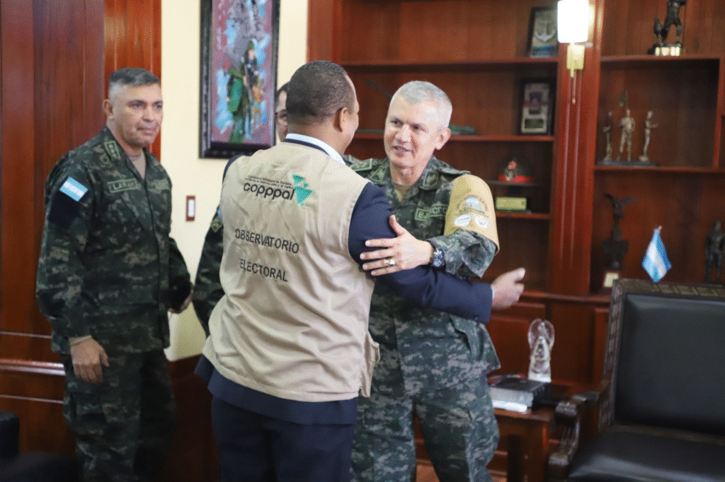 En reunión con la misión internacional de observación electoral de la COPPPAL, las fuerzas armadas de Honduras, ratificaron su compromiso con la transparencia, la paz y la seguridad democrática del país, al tiempo que señalaron que, por mandato constitucional, su única función en el proceso electoral es asegurar el transporte, custodia y vigilancia del material electoral, así como la protección del derecho de cada hondureño a ejercer el sufragio en un ambiente de orden y confianza, única tarea a la que están comprometido, garantizando que en cuanto el CNE les entregue los materiales electorales tienen todo dispuesto para que en tiempo y forma, aun en la adversidad de la geografía hondureña o en condiciones climáticas adversas, estos lleguen a su destino, siempre bajo la supervisión del órgano electoral.
