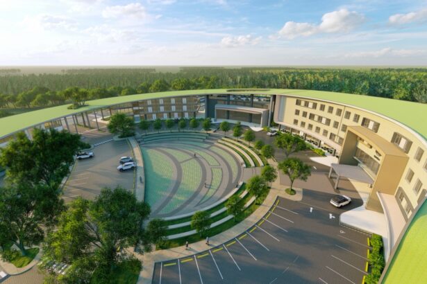 El proyecto se desarrolla sobre un terreno de más de 40,000 metros cuadrados e incorpora un enfoque de diseño sensible al entorno, preservando áreas verdes, respetando franjas ribereñas e integrando soluciones como techos verdes y un anfiteatro central al aire libre, concebido como escenario para actividades culturales, sociales y comunitarias.